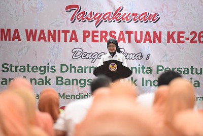 “Tema yang diambil tahun ini relevan dengan agenda pemerintah yang sedang menekankan pentingnya pembangunan sumber daya manusia. Indonesia Emas 2045 tidak dapat diwujudkan hanya oleh kebijakan pemerintah. Visi besar ini membutuhkan kolaborasi, termasuk peran aktif organisasi wanita seperti dharma wanita persatuan,” ujarnya.