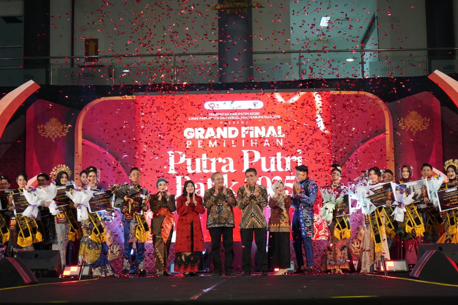 ADAKITANEWS, Kediri – Pemerintah Kabupaten Kediri melalui Dinas Pariwisata dan Kebudayaan menggelar grand final Pemilihan Putra Putri Batik Kabupaten Kediri Tahun 2025 di Convention Hall Simpang Lima Gumul (SLG), Sabtu (20/12) malam.