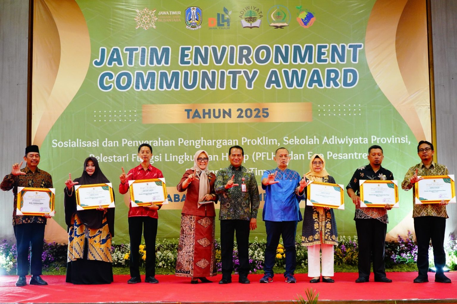 Dalam sambutan sekaligus pembukaan acara, Kepala DLH Provinsi Jawa Timur, Dr. Nurholis, S.Sos., M.Si., M.H., menegaskan bahwa program Eco Pesantren dan Sekolah Adiwiyata bukan sekadar pemberian penghargaan. Menurutnya, program tersebut merupakan bagian dari strategi besar pemerintah daerah dalam mitigasi perubahan iklim, pengelolaan sampah, konservasi energi, serta penguatan peran masyarakat dan lembaga pendidikan sebagai agen perubahan.