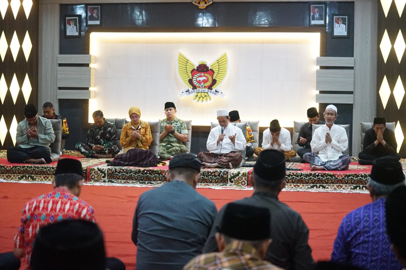 Doa bersama berlangsung khidmat dan penuh kebersamaan. Istigotsah dan doa dipimpin oleh KH. Sholeh Abdul Jalil dan KH. Abdul Hamid, diikuti jajaran Forkopimda, tokoh agama, tokoh masyarakat, serta unsur pemerintah daerah.