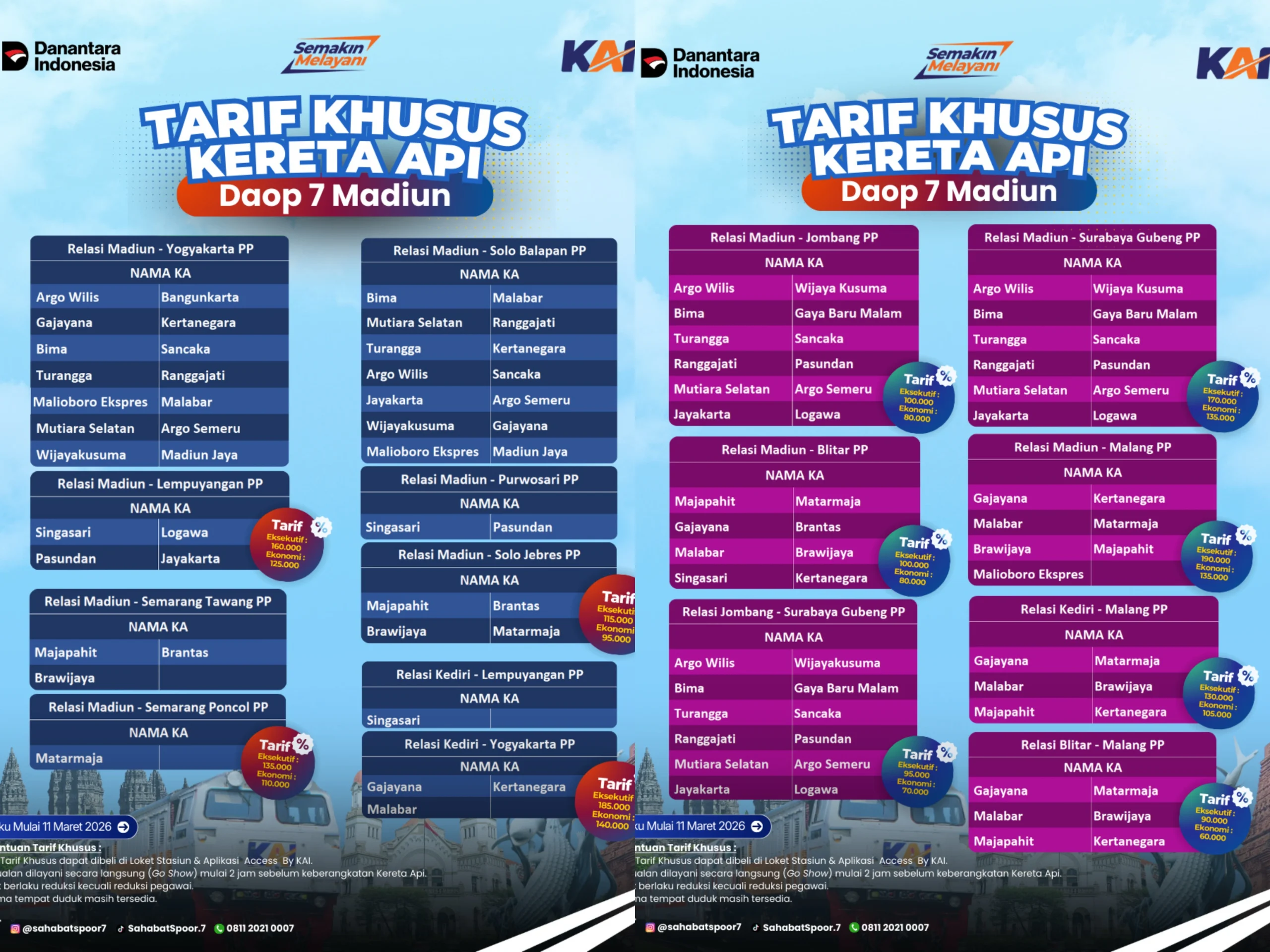 * Madiun – Jombang/Blitar: Eksekutif Rp100.000, Ekonomi Rp80.000.