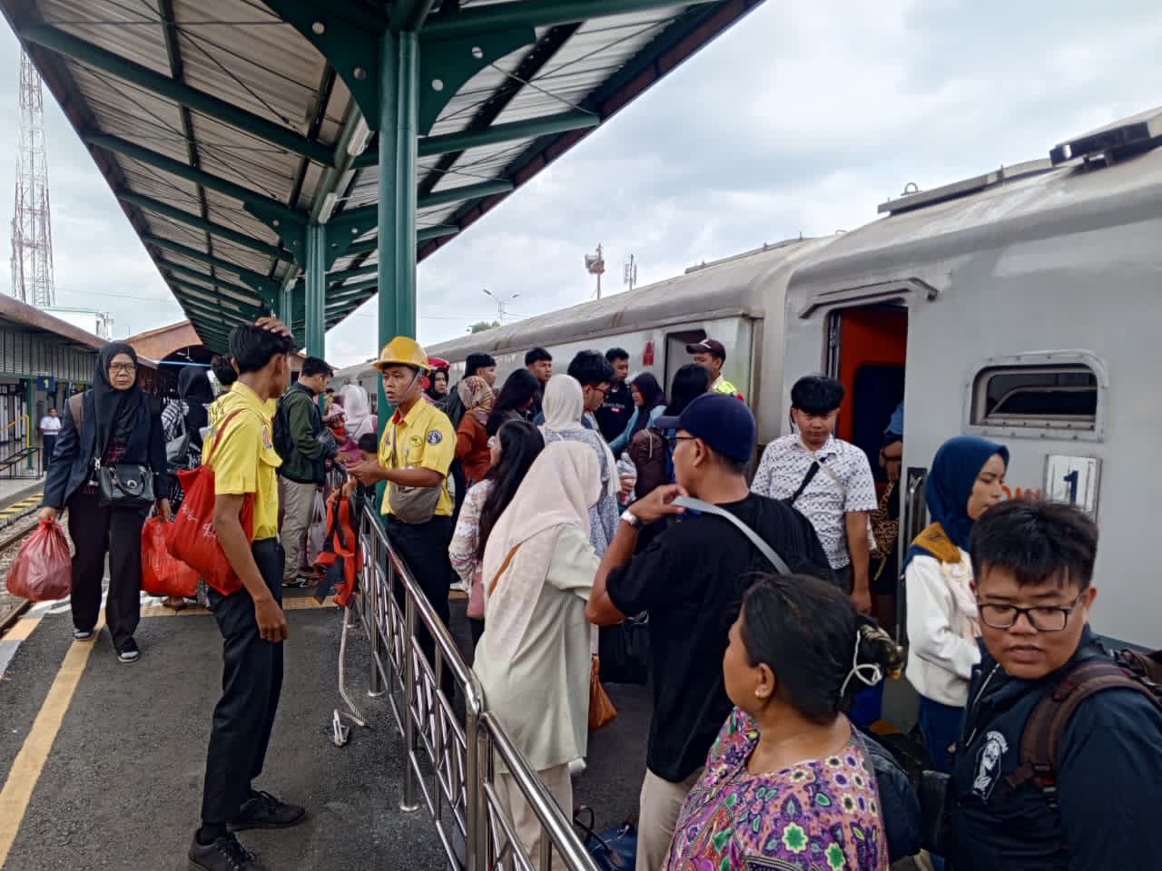 Manajer Humas KAI Daop 7 Madiun, Tohari, menyampaikan bahwa minat masyarakat menggunakan transportasi kereta api tetap tinggi meski tren kepadatan mulai melandai.