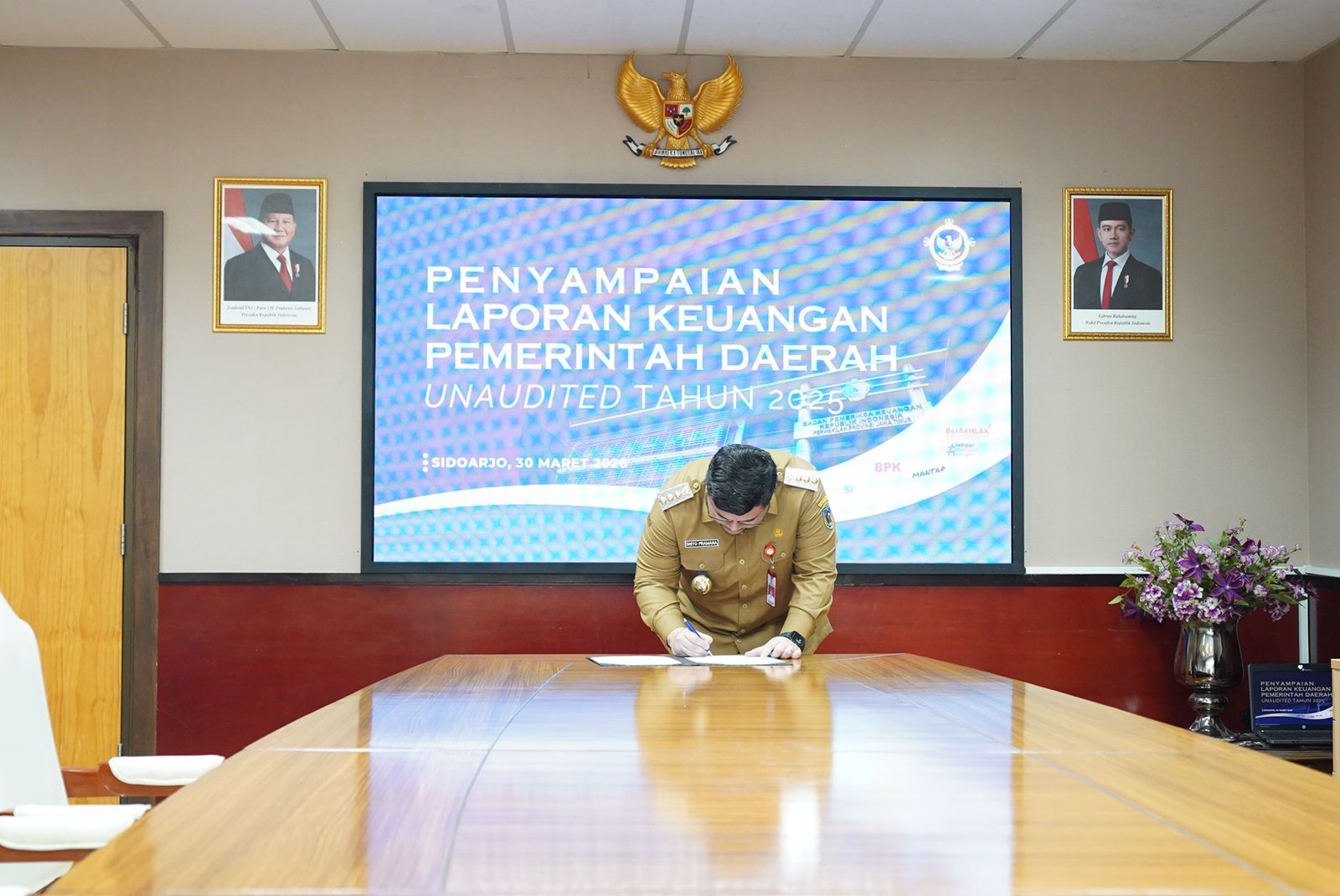 Dokumen tersebut diserahkan langsung kepada Kepala BPK RI Perwakilan Jawa Timur, Yuan Candra Djaisin, di Sidoarjo, Senin (30/3/2026).