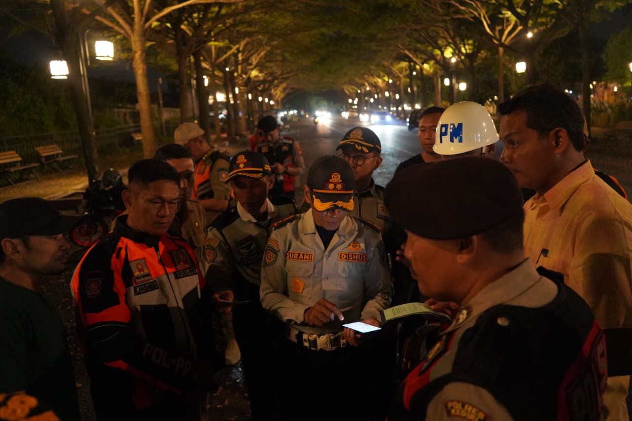 ADAKITANEWS, Kediri – Tim gabungan lintas sektor melakukan patroli besar-besaran untuk menertibkan praktik parkir liar di kawasan wisata Simpang Lima Gumul (SLG), Senin (6/4/2026) malam.